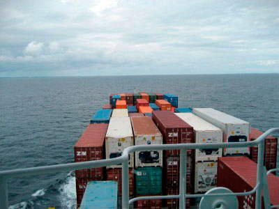 Fahrt auf dem Containerschiff