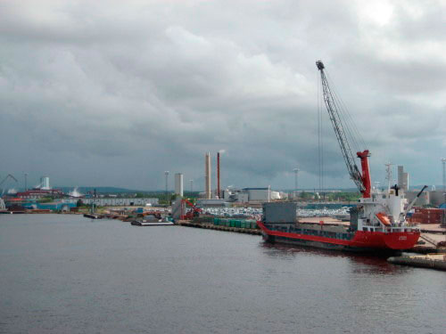 Helsingborg verschlafen wir dann, Ankunft war mitten in der Nacht, abgelegt 6:45. Nur der zwischendurch abgestellte Diesel fehlt, man gewöhnt sich doch schnell an seine Geräusche. Bis Halmstad sind es nur ein paar Stunden, so haben wir nach dem Frühstück nur wenig Seefahrt, können aber dafür aber um 10 Uhr beim Anlegen zugucken. Das klappt, wie auf der ganzen Reise, perfekt. Nicht ganz so perfekt ist der Kranfahrer, der die Container ablädt. Das System ist allerdings auch nicht vergleichbar mit den Ladebrücken, die es sonst überall gibt.