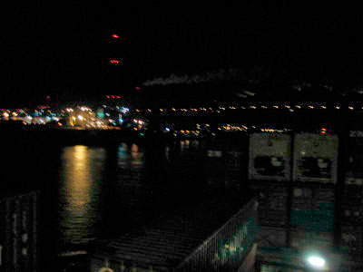Ach so, der Aussenbalkon maß etwa 12 m x 2,5 m. Schnell unsere Sachen eingeräumt, mal einen Blick nach draussen geworfen und schon ist Zeit fürs Abendessen. Und ganz prima, weder das kleine Schwarze noch ein dunkler Anzug sind angesagt, Jeans und ein Pullover tun es hier. Wir werden an den Tisch, der für den Kapitän und dem Chief in der Messe steht, gesetzt, woanders ist auch kein Platz. An dem zweiten Tisch sorgt der Koch für die restlichen Dienstgrade. Wer da was ist, kann man nur durch Fragen rausfinden, Uniformen oder dergleichen gibt es nicht. Und viel Zeit zum Essen hat die Besatzung nicht. Hier richtet sich, was auch nicht verwunderlich ist, alles nach dem Schiff und dem Hafen. Wir kommen uns als Gäste da schon mal etwas seltsam vor. Zur Begrüssung hat uns der Smutje ein drei Gänge Menue bereitet, gut, aber viel zu viel. Ihm macht es allerdings richtig Spass, wenn seine Kunden ordentlich zulangen. Wir brauchen ein paar Tage, bis ihm eingeht, dass wir nicht mehr, als eine warme Mahlzeit schaffen. Trotzdem kriegt er es manchmal hin, wenigstens etwas warmes auch Morgens und Abends dazwischen zu schummeln. über das Essen kann man also nicht maulen, viel Abwechselung, auch mal gesund und immer genug. Zwischendurch gibt es noch zweimal Kaffee oder Tee und dazu, wenn man will (wir wollen nicht) auch noch ein Brötchen, Toastbrot usw. Saft und Wasser gehört zum "äll inclusive", für die vermutet langen Abende haben wir einen Karton Becks und Mineralwasser erstanden, hier ist die Auswahl eher begrenzt.