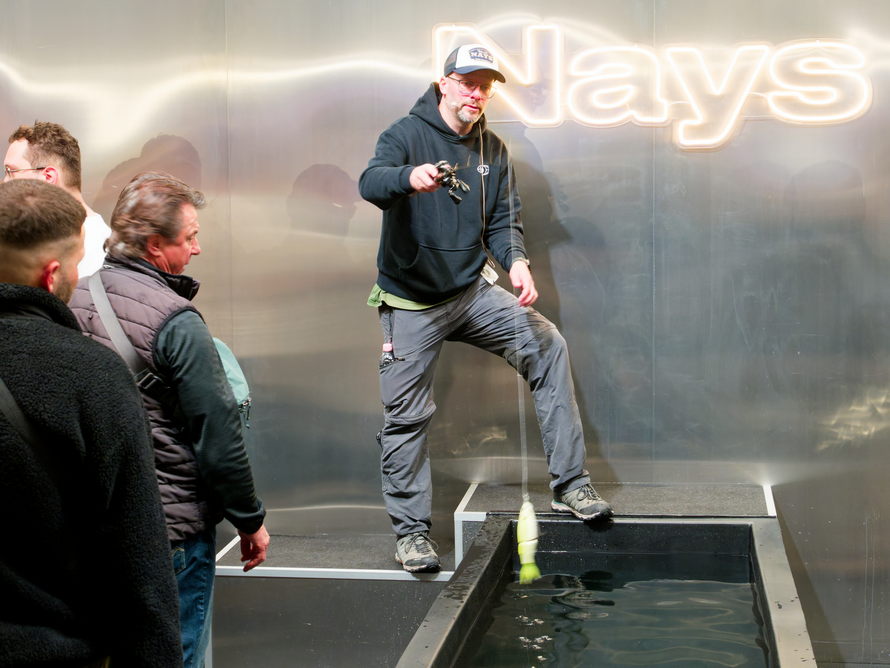 In beleuchteten Vitrinen wurden Blinker und Wobbler wie Schmuckstücke präsentiert.