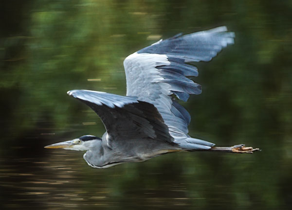 Der Graureiher begleitete das Boot.