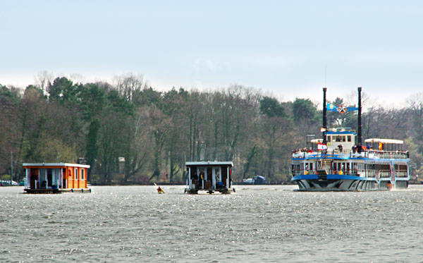 Berlin. Havel. Hausboote auf der Route eines Fahrgastschiffes