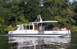 Berlin. Havel. Hausboote auf der Route eines Fahrgastschiffes