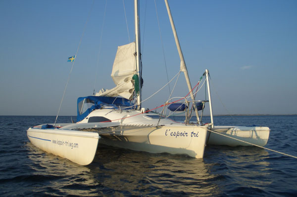Trimaran vor Anker